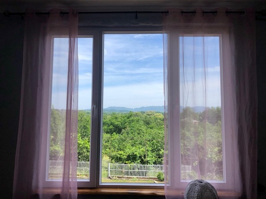 Duże okno z widokiem na Góry Adżarskie oraz centrum naszego ogrodu.